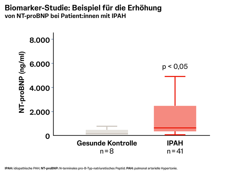 Bisher hat sich vor allem der BNP-/NT-proBNP-Wert (B-Typ-natriuretisches Peptid/N-terminales pro-B-Typ-natriuretisches Peptid) als wichtiger Prädiktor für das Vorliegen einer pulmonal arteriellen Hypertonie (PAH) erwiesen.1 Die Werte sind zwar nicht spezifisch für PAH, aber als Marker für myokardialen Stress ist der NT-proBNP-Wert aufgrund der Beteiligung des Herzens häufig auch bei PAH über die Normschwelle von 125 ng/l erhöht.1, 7