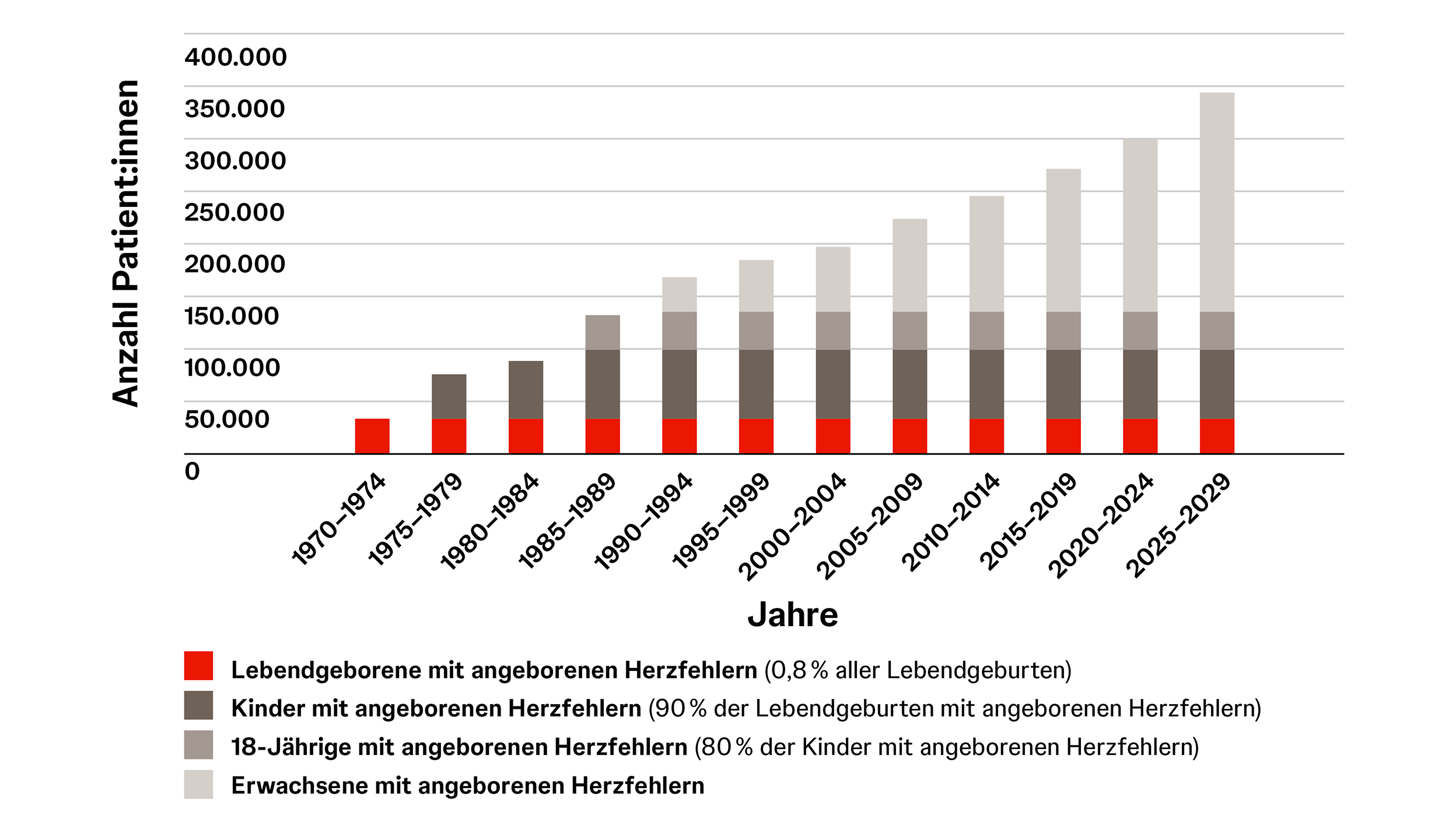 Angeborene Herzfehler gehören zu den häufigsten isolierten angeborenen Organfehlbildungen. In Deutschland sind jährlich etwa 6.500 Kinder davon betroffen. Verstarben früher noch 80 % der Kinder mit angeborenem Herzfehler innerhalb der ersten Lebensjahre, so erreichen heute dank Fortschritten in der Herzchirurgie sowie der pädiatrischen Kardiologie und Intensivmedizin mehr als 90 % das Erwachsenenalter. Dies zeigt sich auch in den Mortalitätszahlen, die in den letzten Jahrzehnten für Menschen mit angeborenen Herzfehlern deutlich zurückgegangen sind. Obwohl die Mortalität deutlich gesunken ist, besteht nach Korrektur oder Reparatur eines angeborenen Herzfehlers häufig das Risiko für Spätfolgen, wie die Entwicklung einer pulmonalen Hypertonie (PH) oder pulmonal arteriellen Hypertonie (PAH).14
