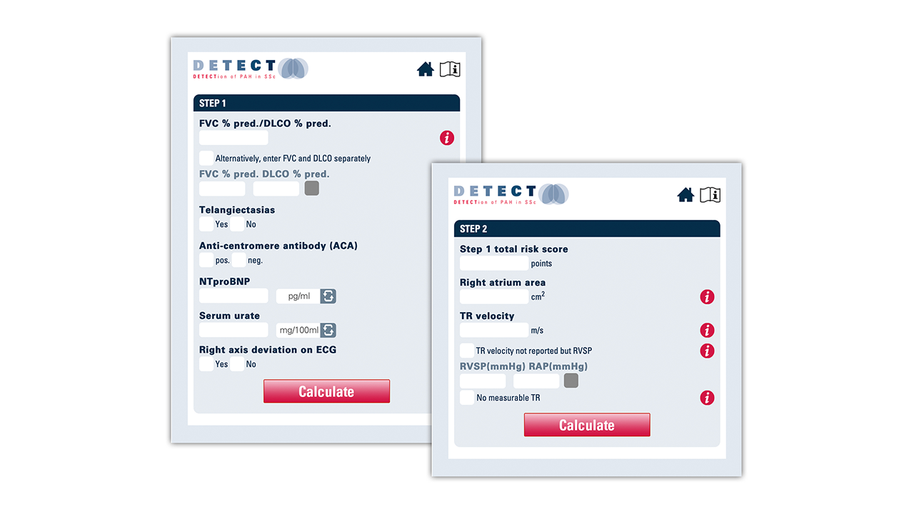 Um den DETECT-Algorithmus möglichst einfach anwenden zu können, wurde der PAH-Risikokalkulator entwickelt – ein praktisches Tool für die Routinepraxis.#, 13