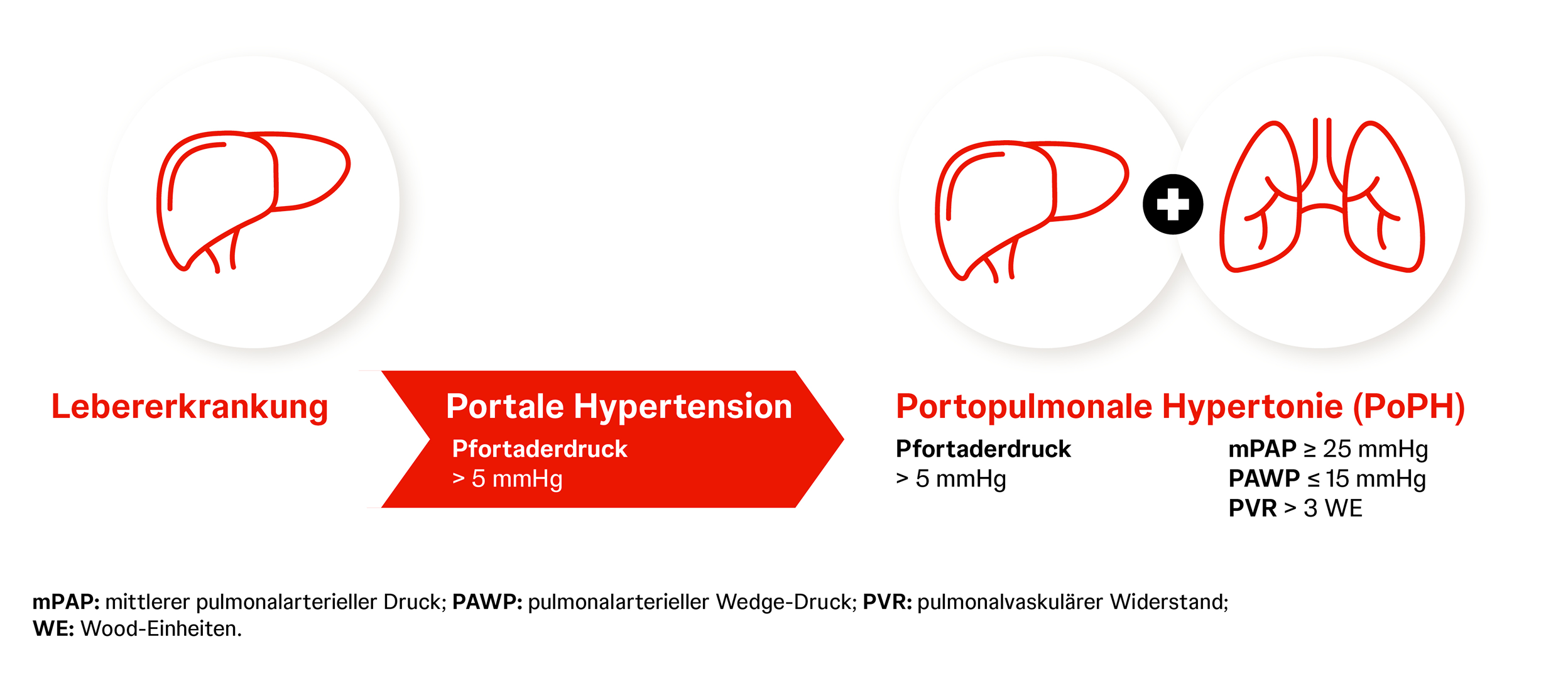 Die portale Hypertension ist ein klinisches Syndrom, das durch eine Erhöhung des Pfortaderdrucks (auch portalvenöser Druck) gekennzeichnet ist (> 5 mmHg). Klinisch signifikant wird eine portale Hypertension bei einer Druckerhöhung über 10–12 mmHg, da ab diesem Bereich Komplikationen, wie z. B. portopulmonale Hypertonie (PoPH), auftreten.30